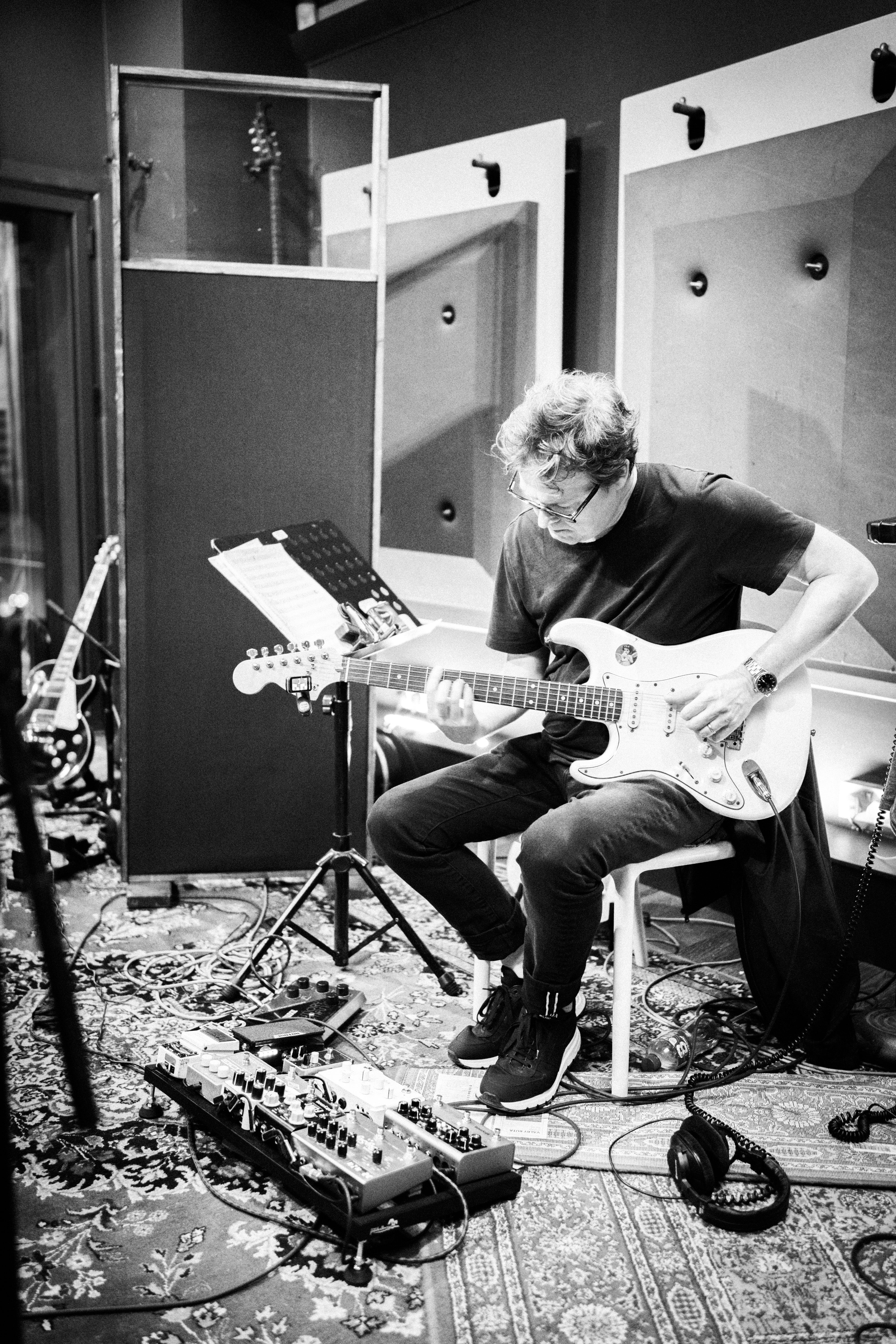 I think he learned quite a lot from recording with Daniel Lanois. Colin generally has his amp really, really loud. And then he plays quite softly with his fingers. It's a very cool and dynamic way of playing electric guitar.
